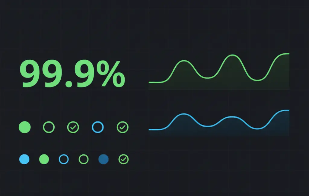 This is the most fundamental metric - the percentage of time your site is available and functioning. Industry standard targets are typically 99.9% (three nines) or higher, which allows for approximately 8.76 hours of downtime per year.
