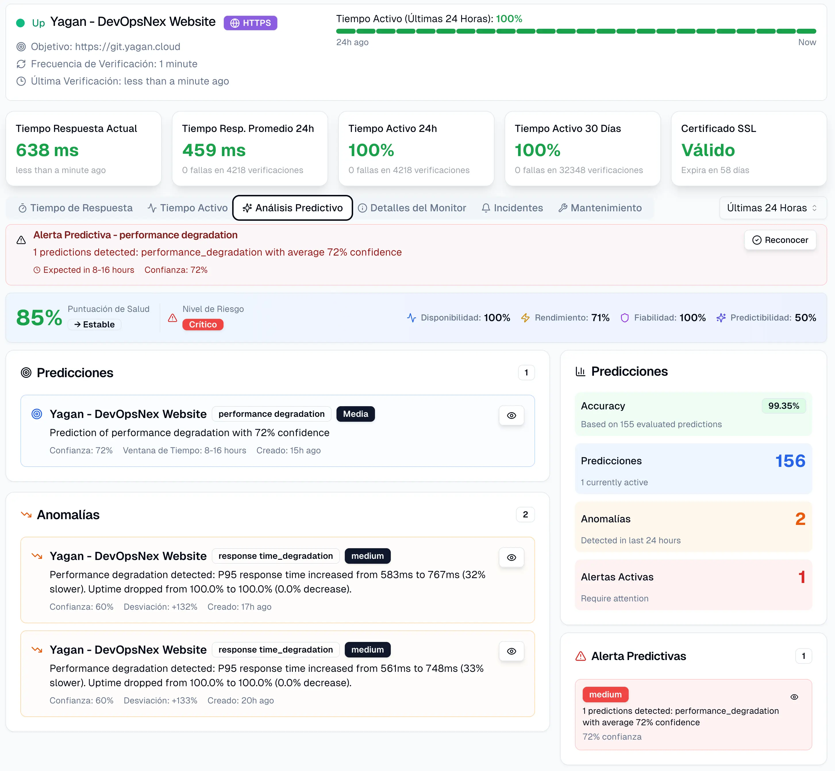 Los problemas se detectan antes de que los usuarios los reporten.